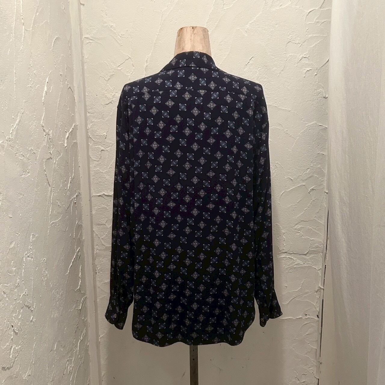 ネイビーを基調に名称不明の柄が全体に入ります。