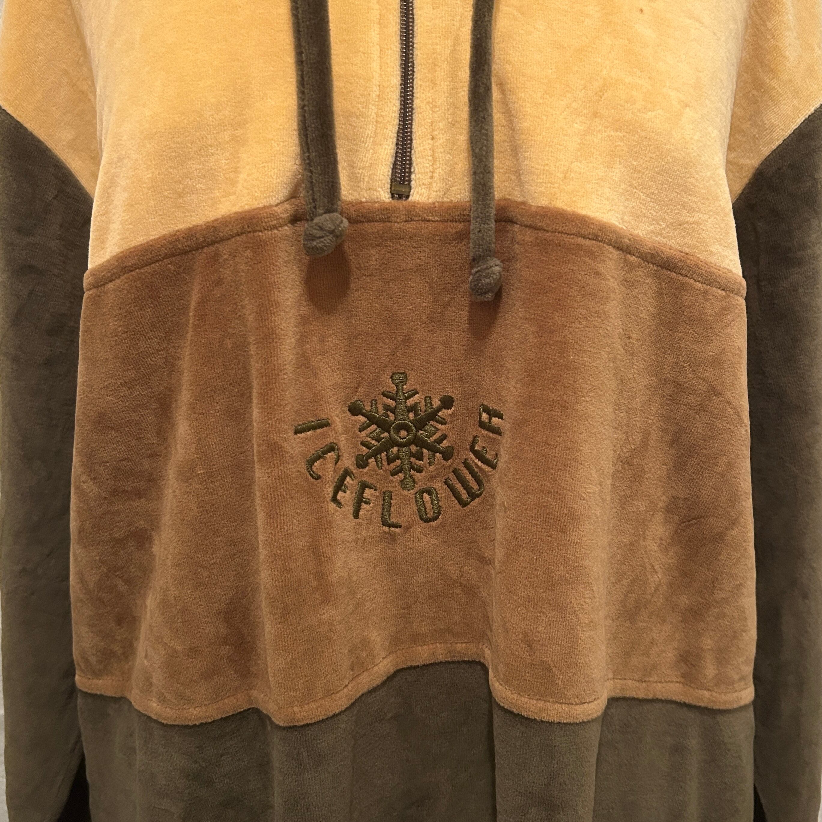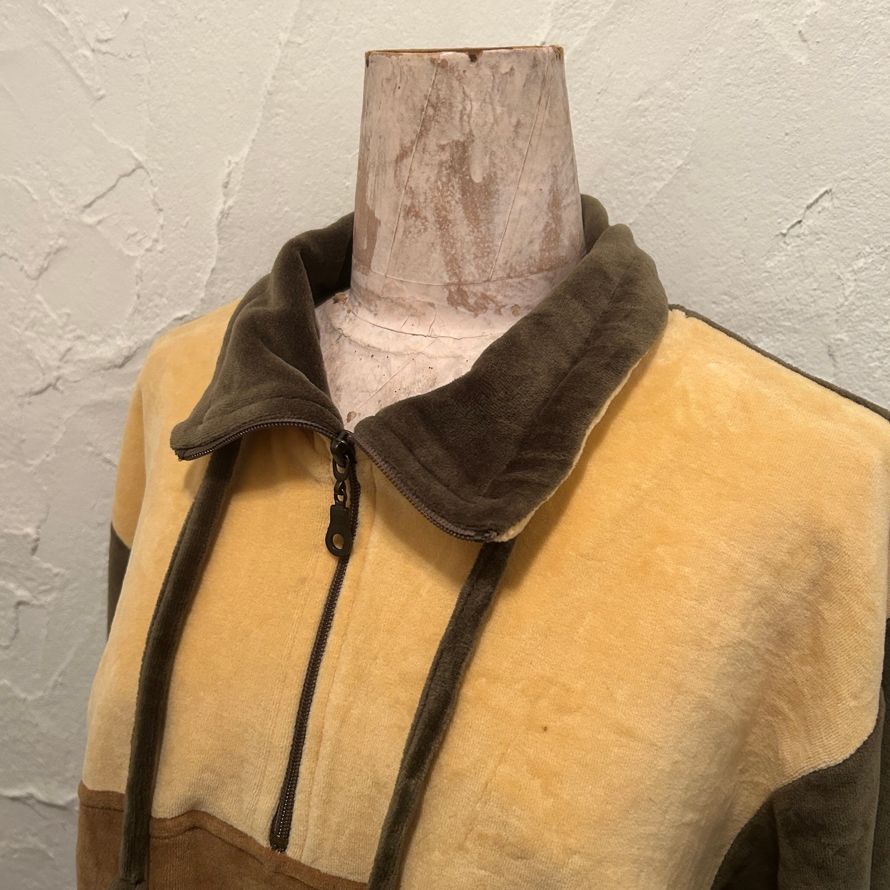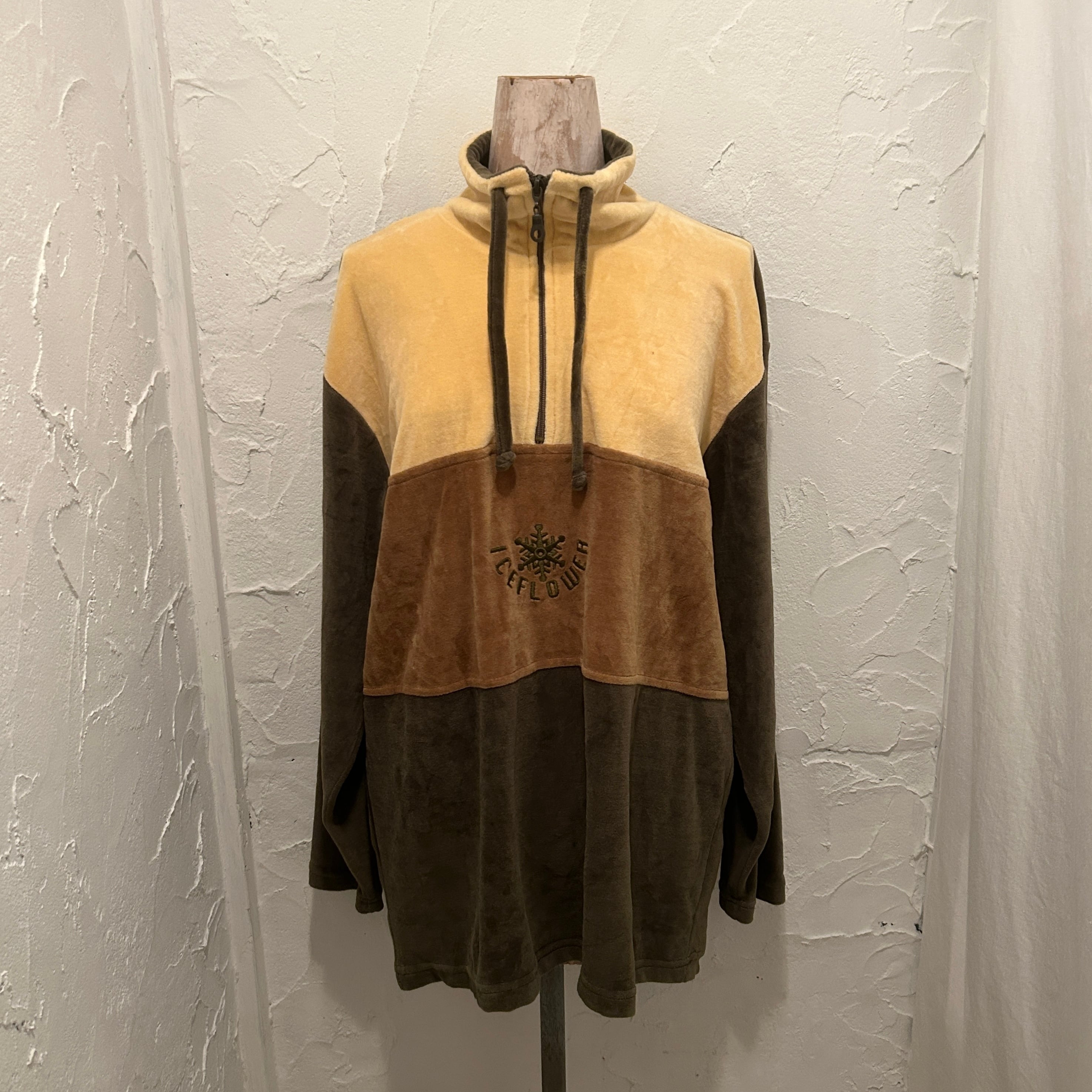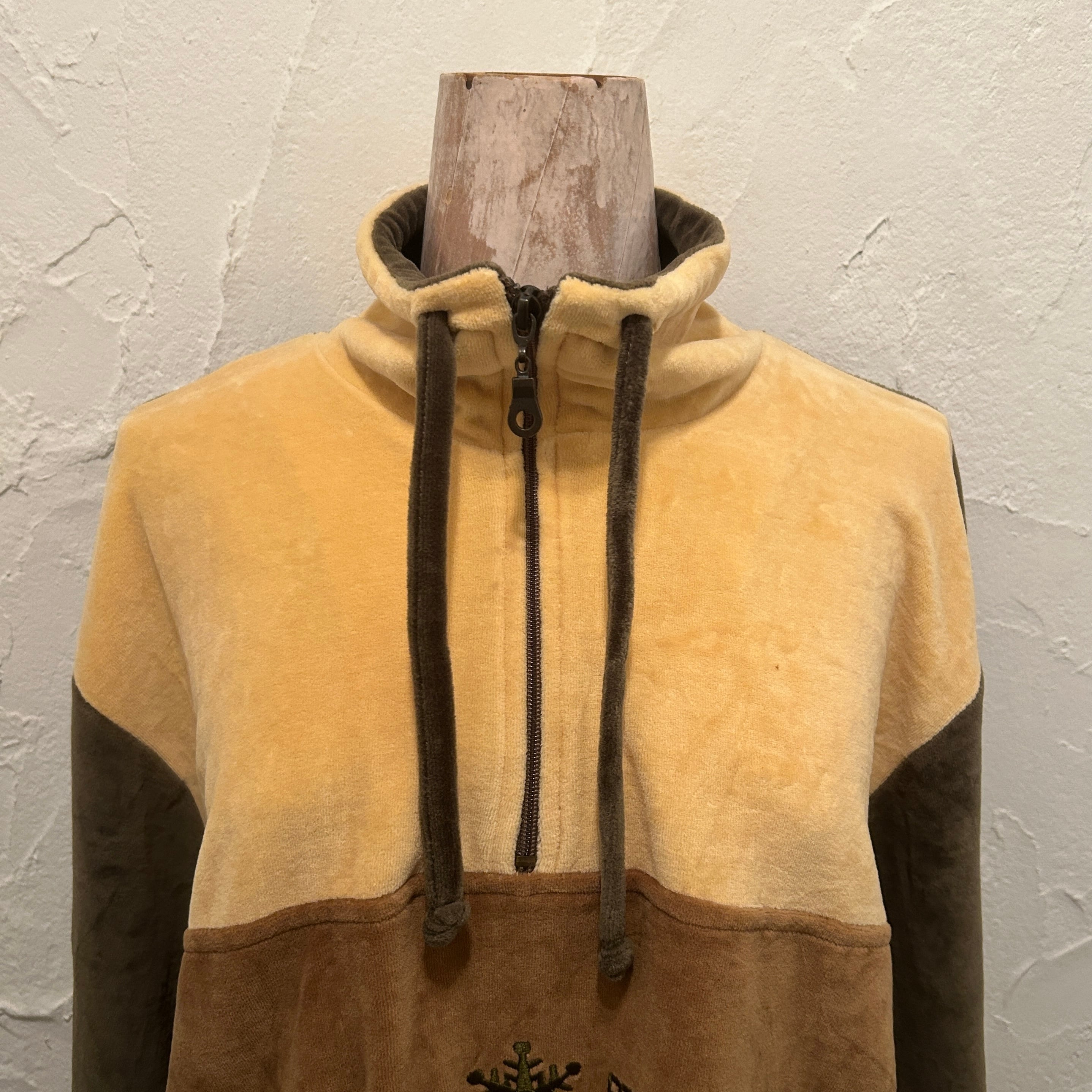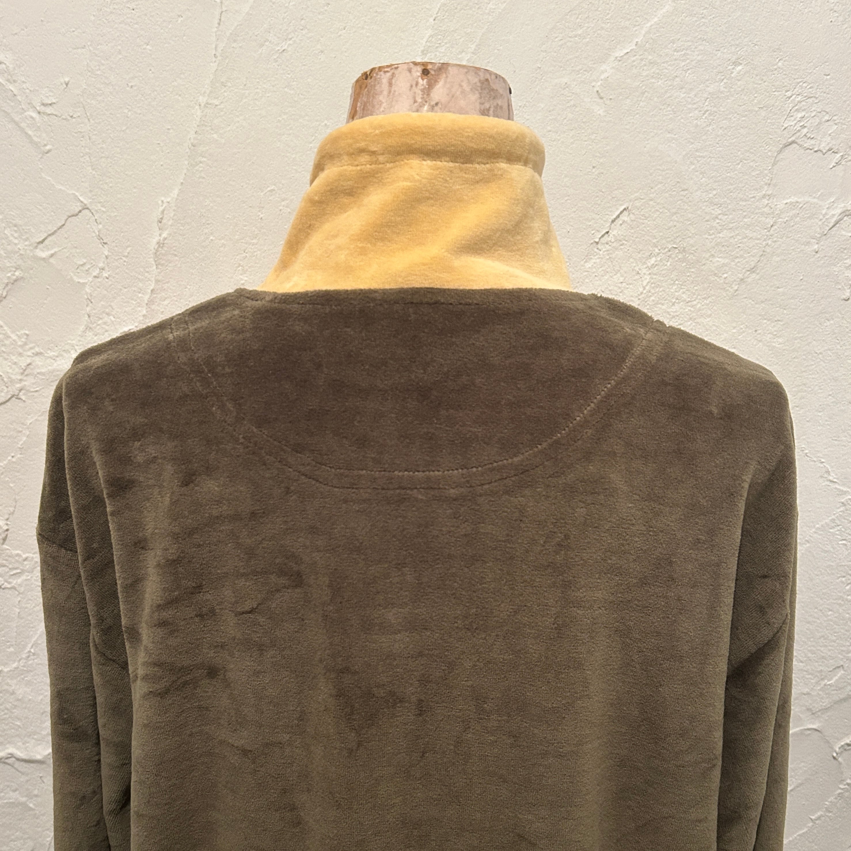 ライトイエロー、キャメル、オリーブの3色切り替えのカラーリングで、レトロな雰囲気のプルオーバー