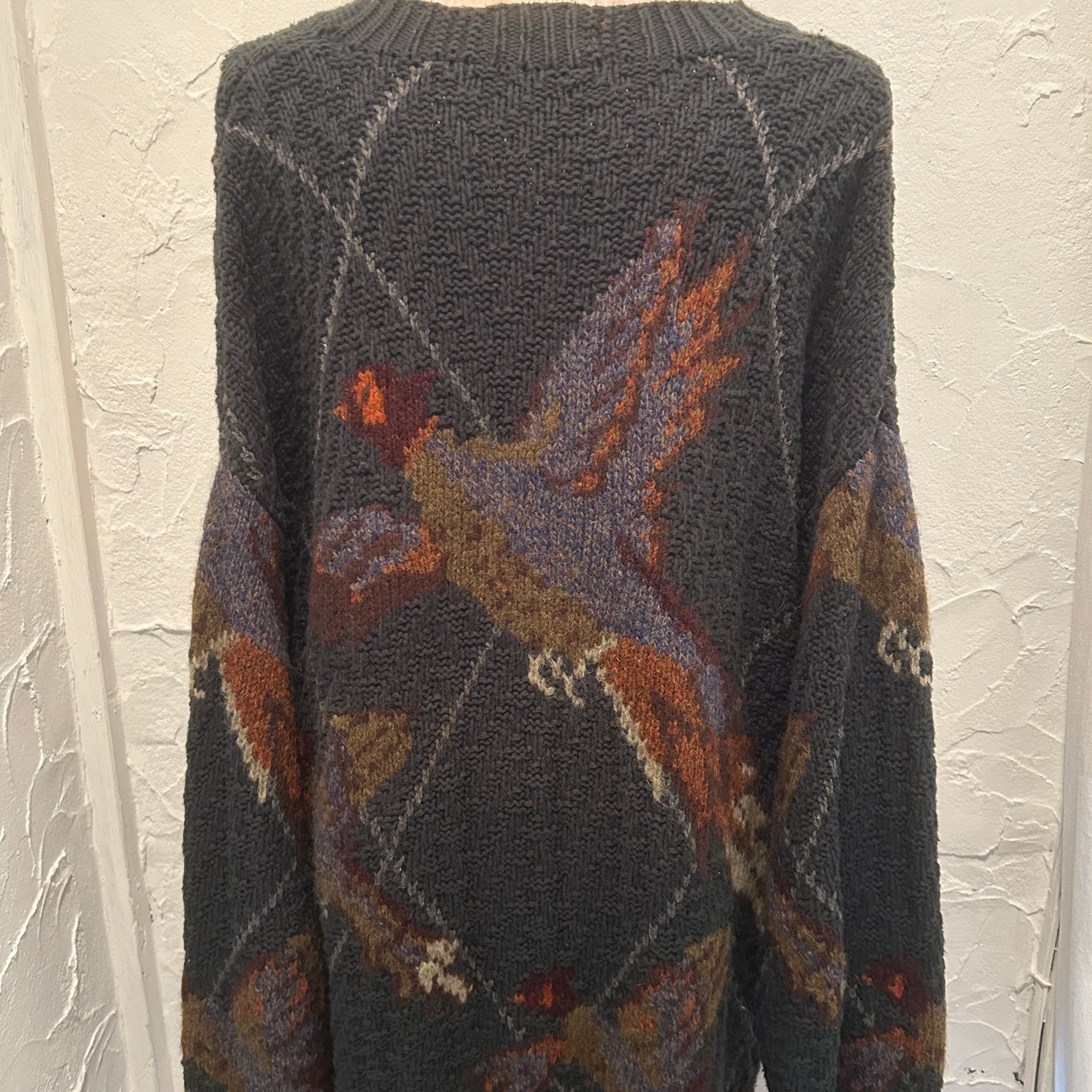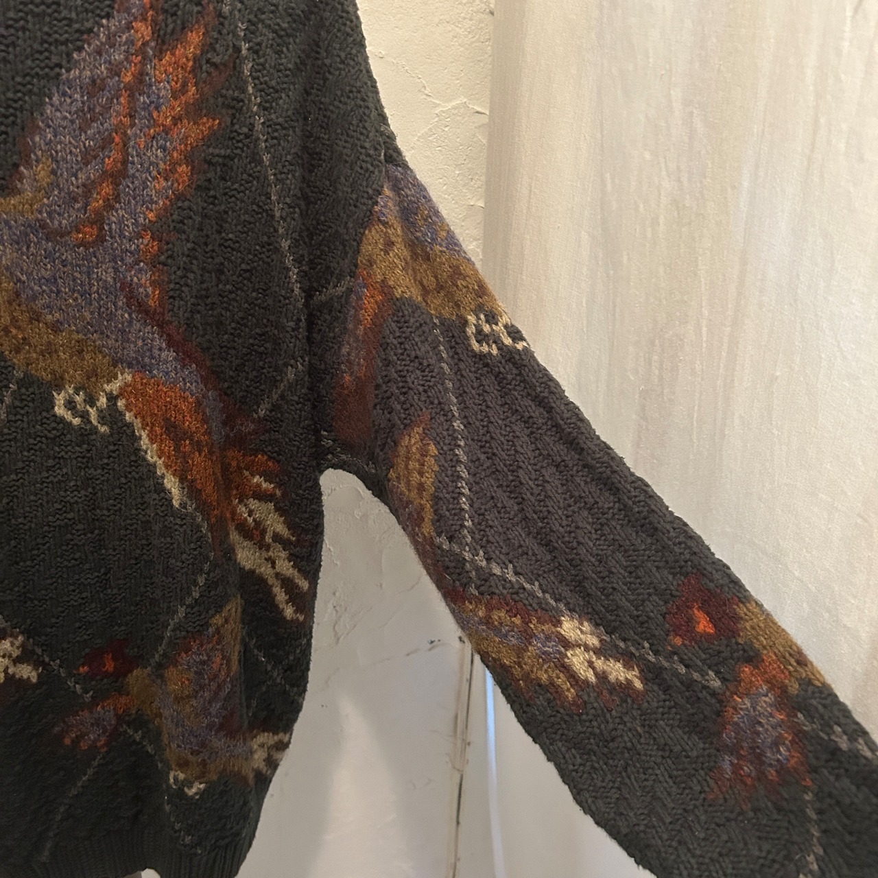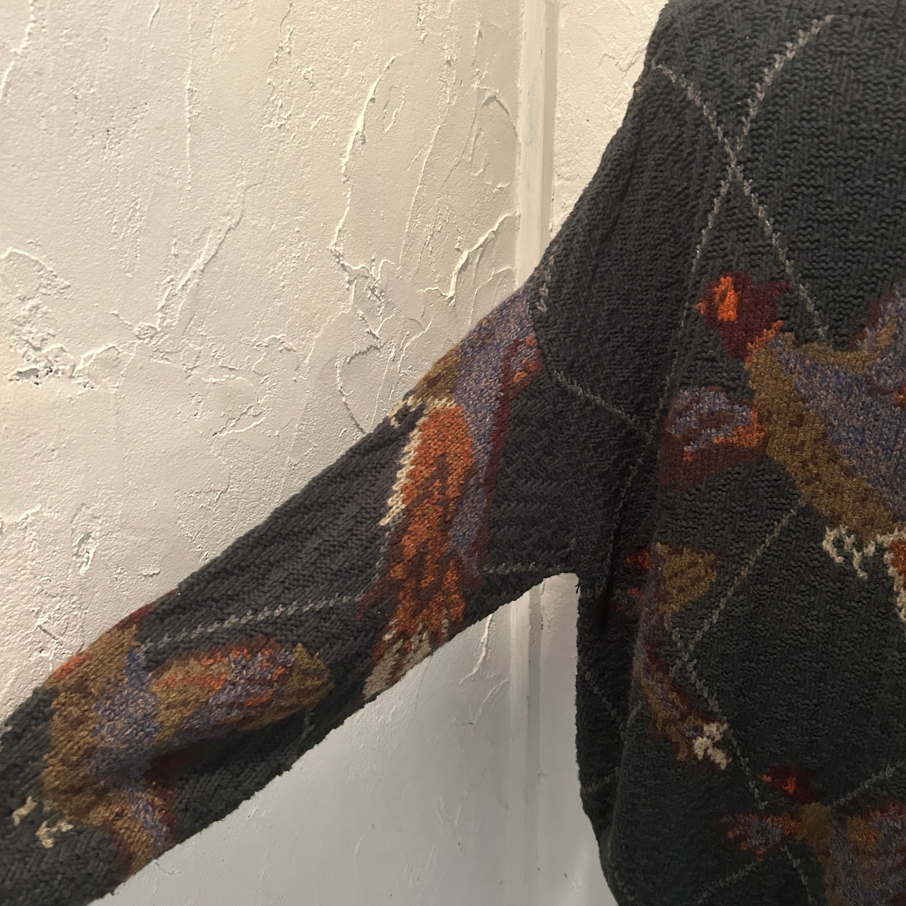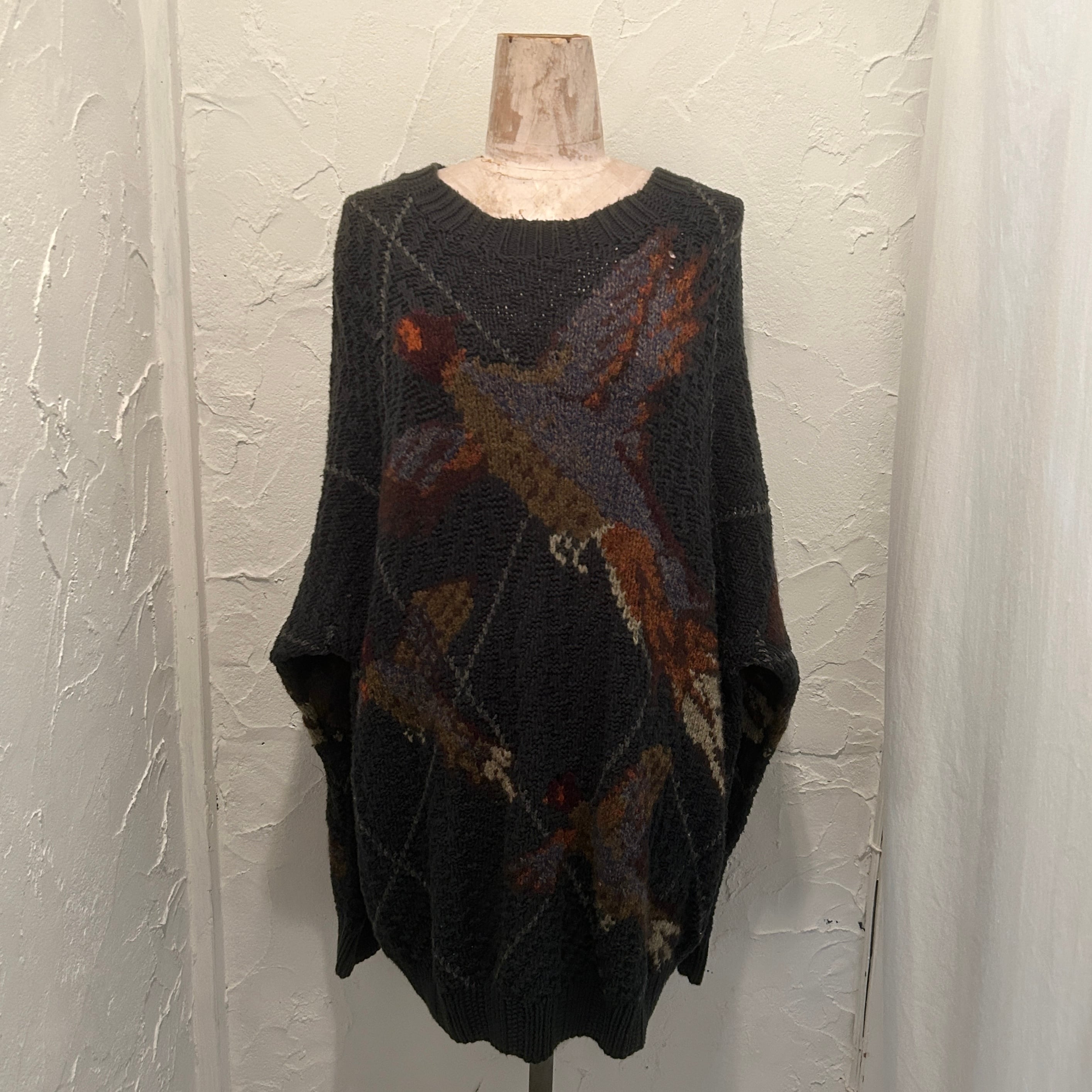 迫力あるフライングダック柄が全面にあしらわれたニット。