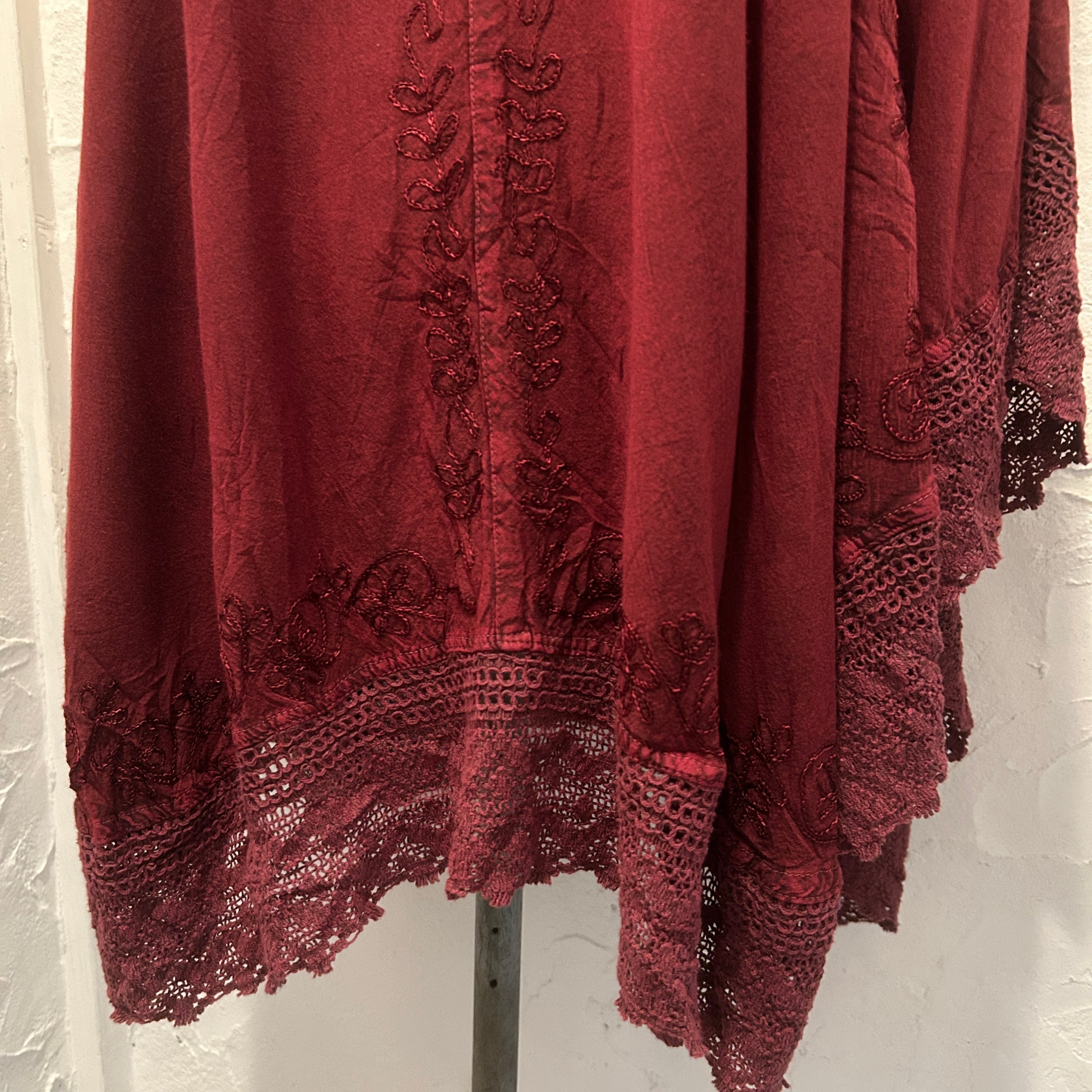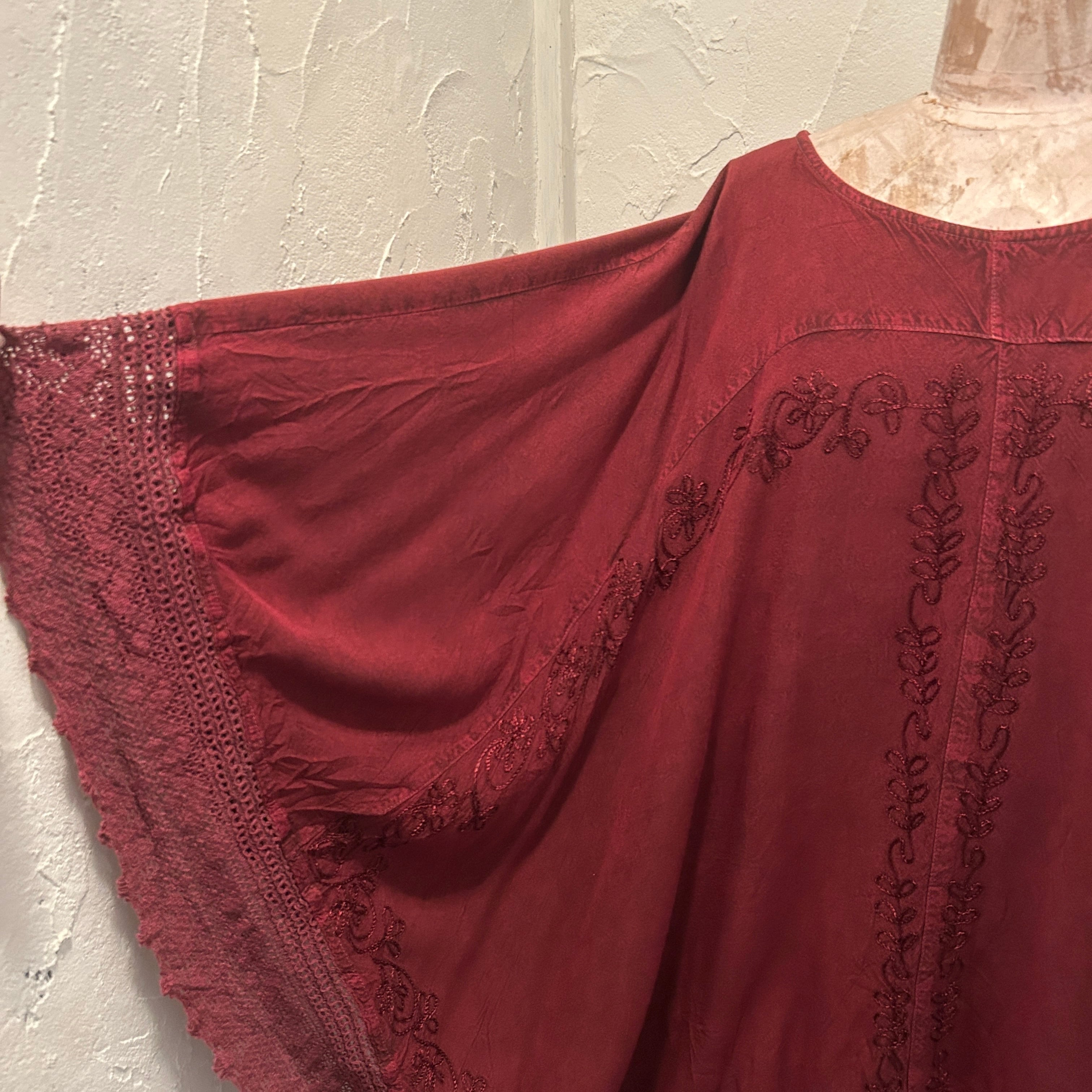 Bordeaux Folklore Embroidered Lace Poncho