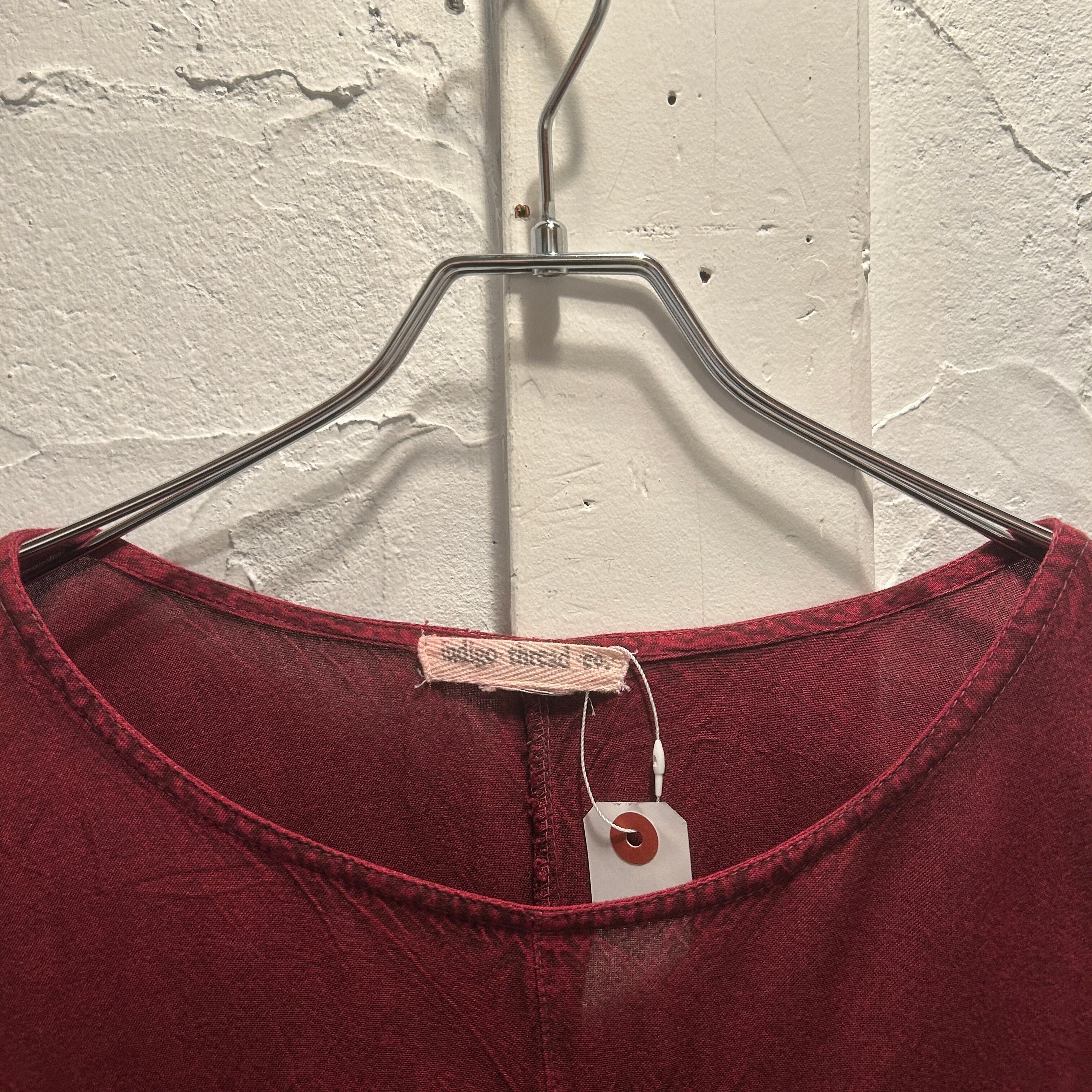 深みのあるボルドーカラーに、胸元から裾へ流れるボタニカル刺繍と繊細なレースが映える、存在感たっぷりの一枚です。