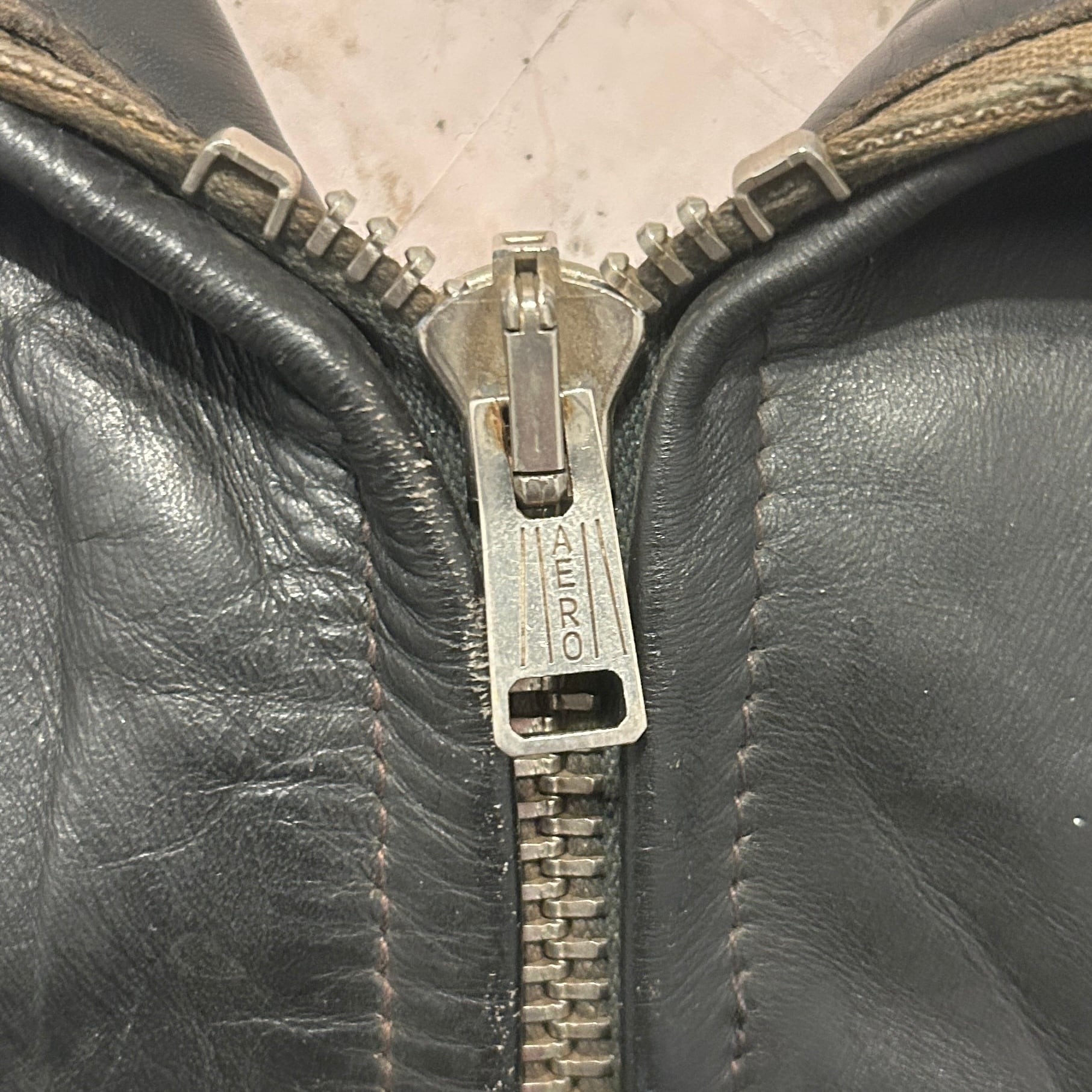 しっかりと厚みのあるブラックレザーに、フロントは AEROジップ を使用した無骨な一着です。