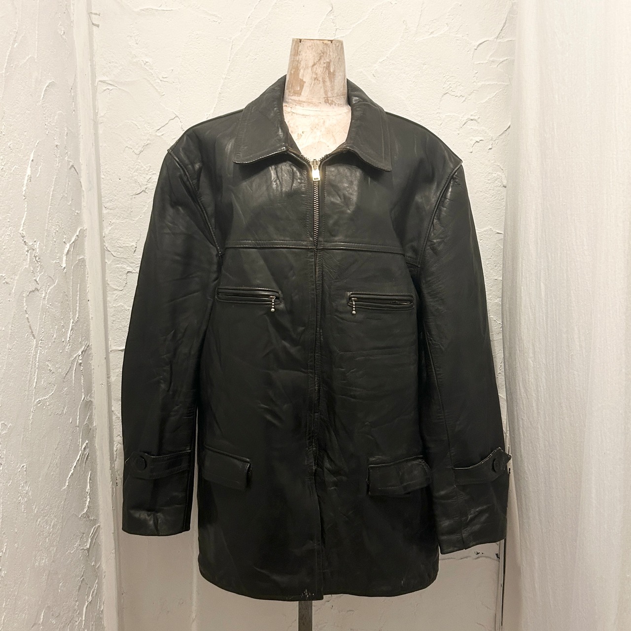 長年着込まれたことで生まれたレザーのシワや表情は、