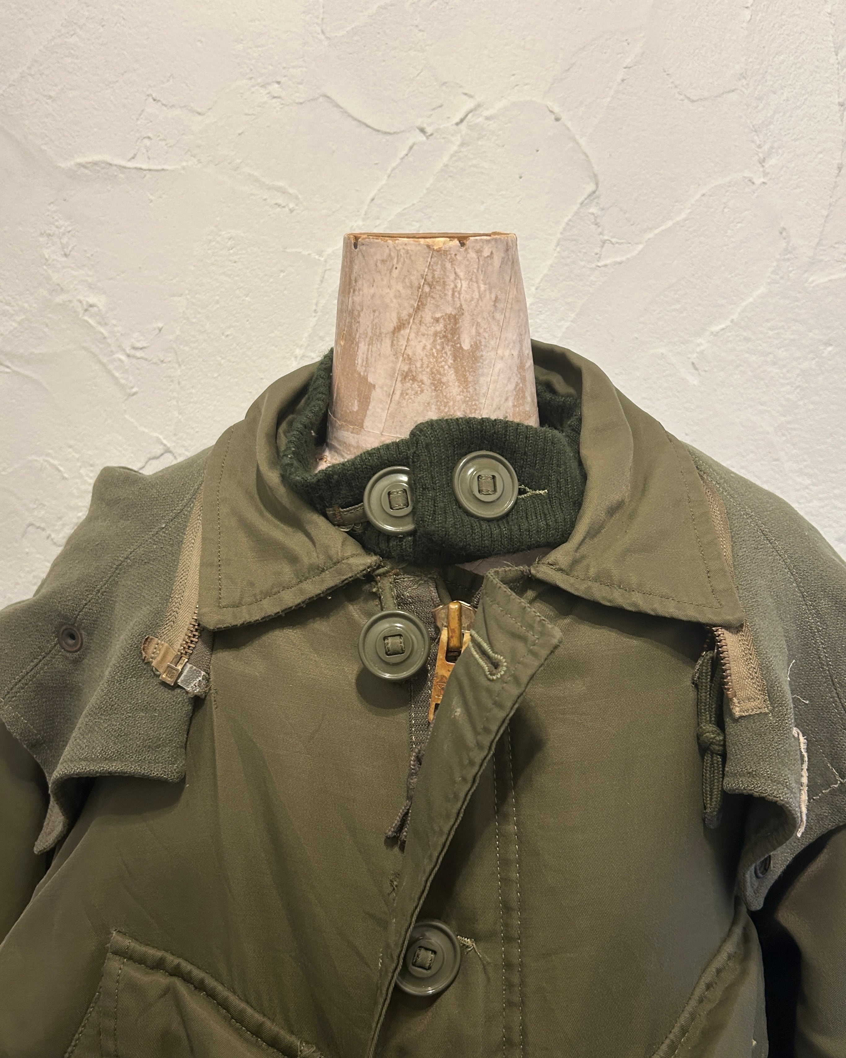 フロントはボタンとジッパーの二重構造で、防寒性を最優先した実用的なディテールが詰め込まれています。