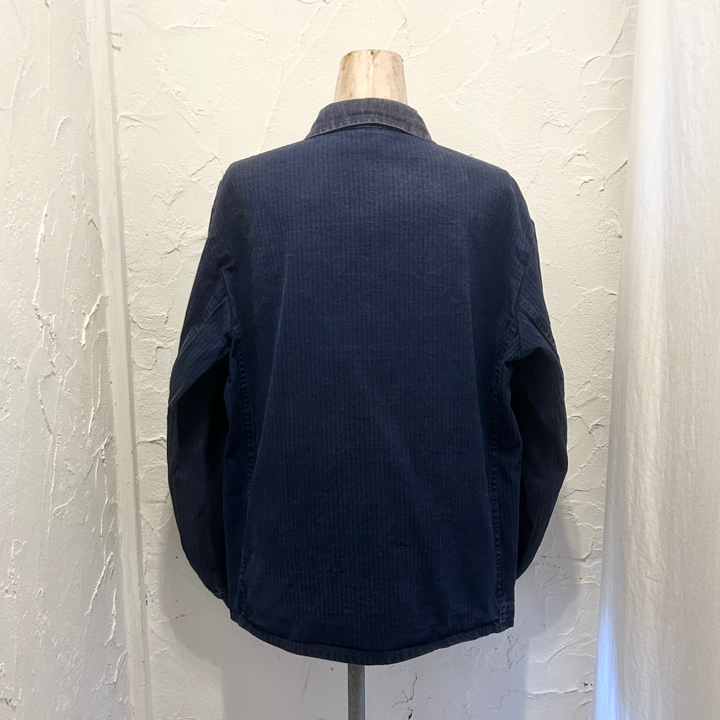 ネイビーのコットンツイルに、さりげなく浮かび上がるヘリンボーンストライプが、