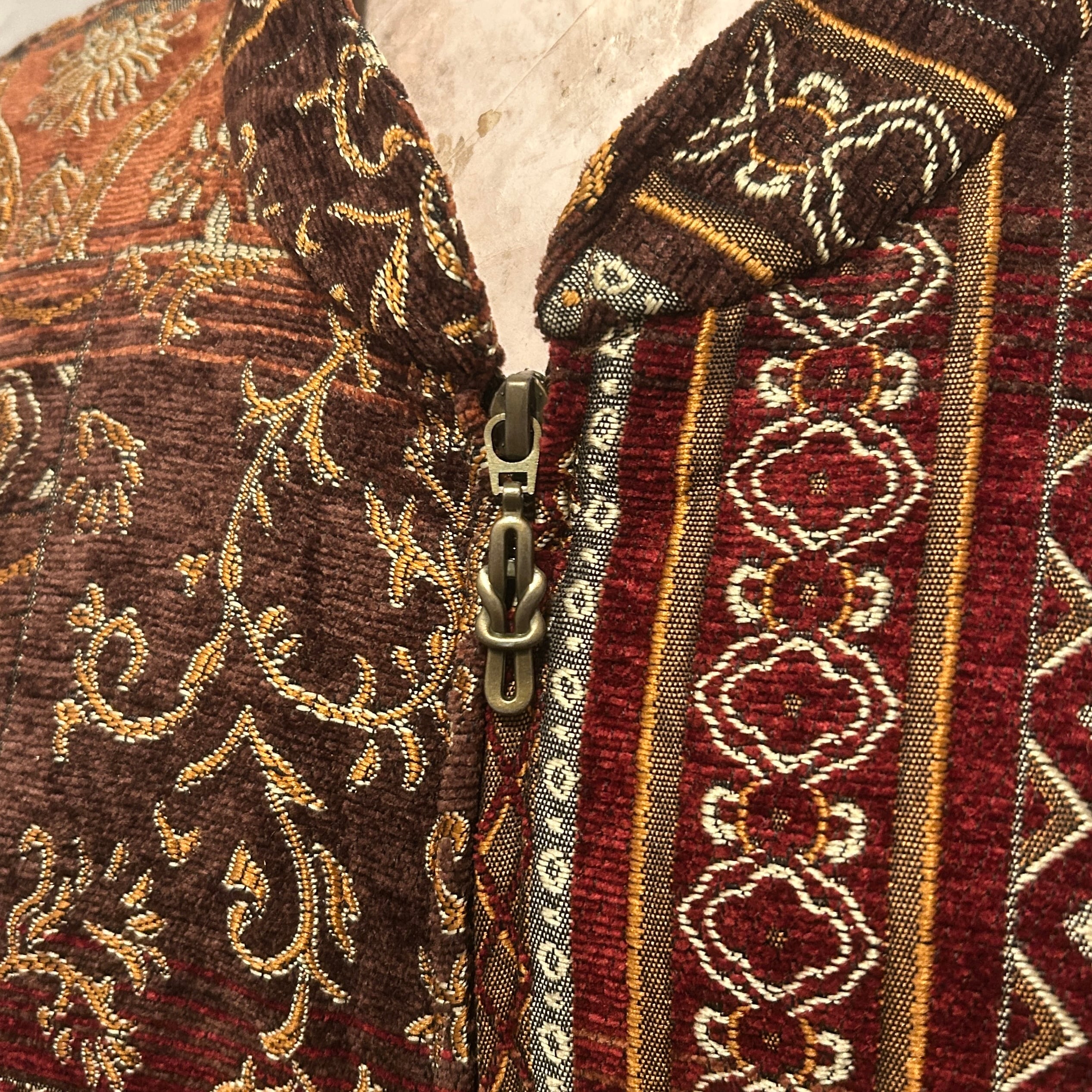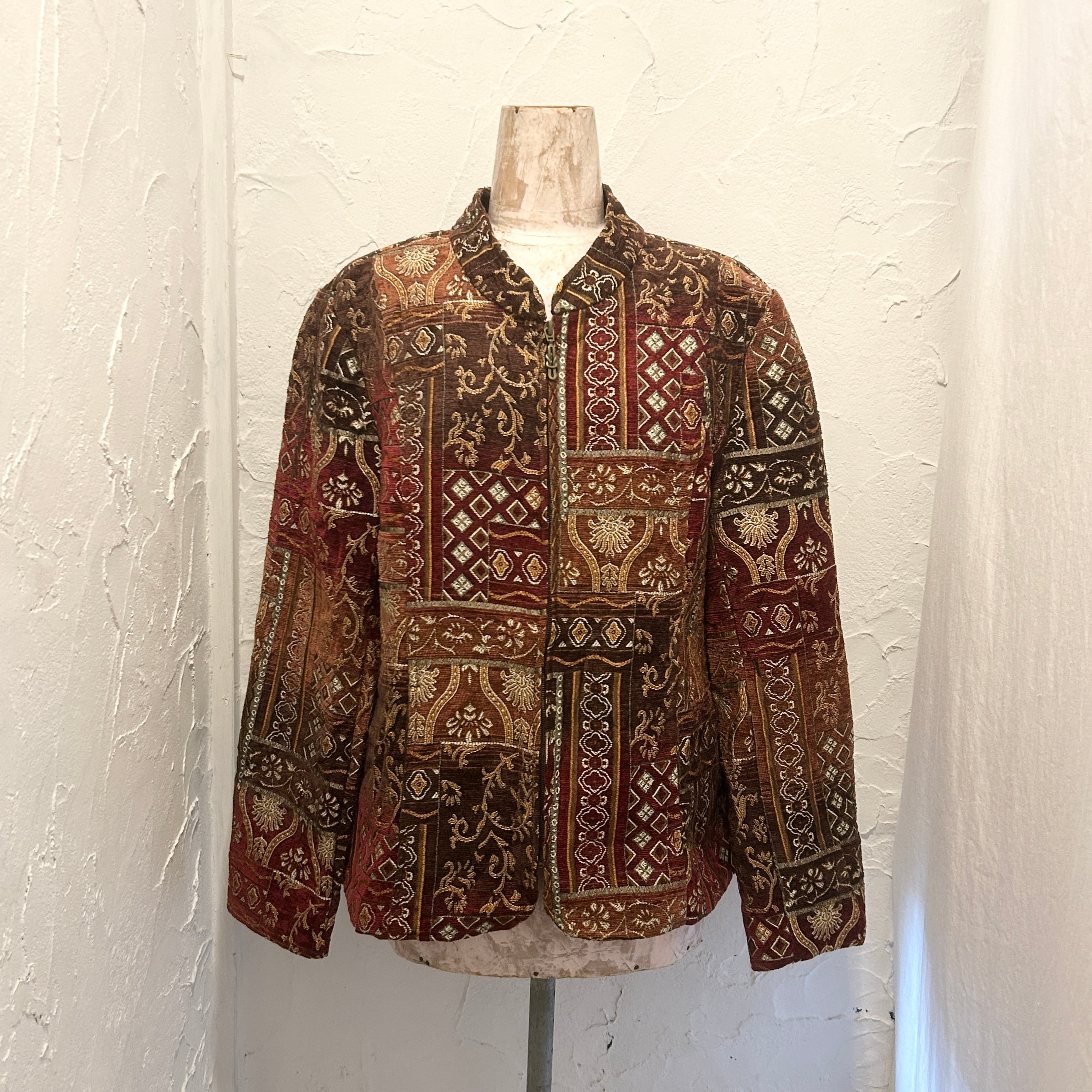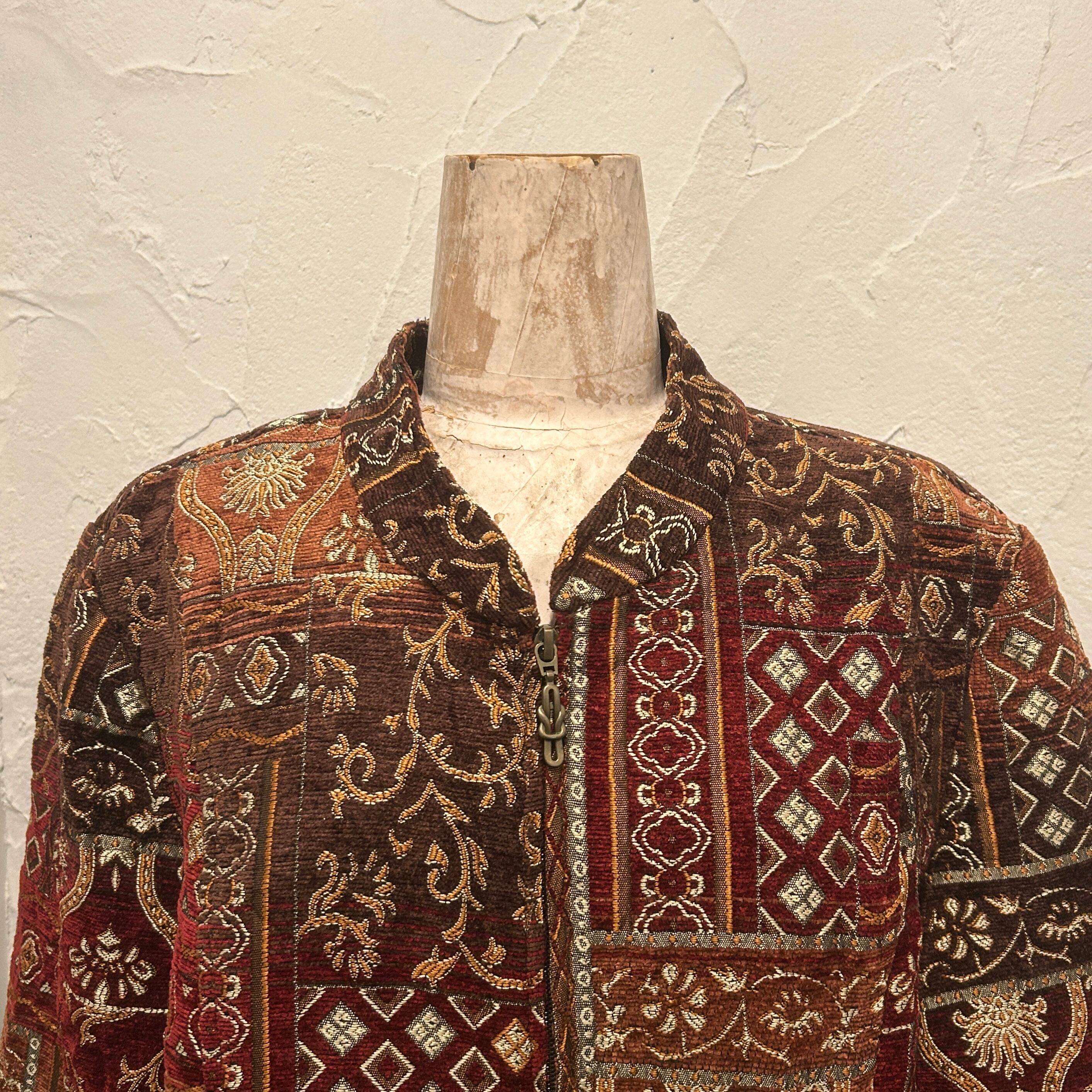 Gobelin-style woven fabric patchwork Zip Jacket